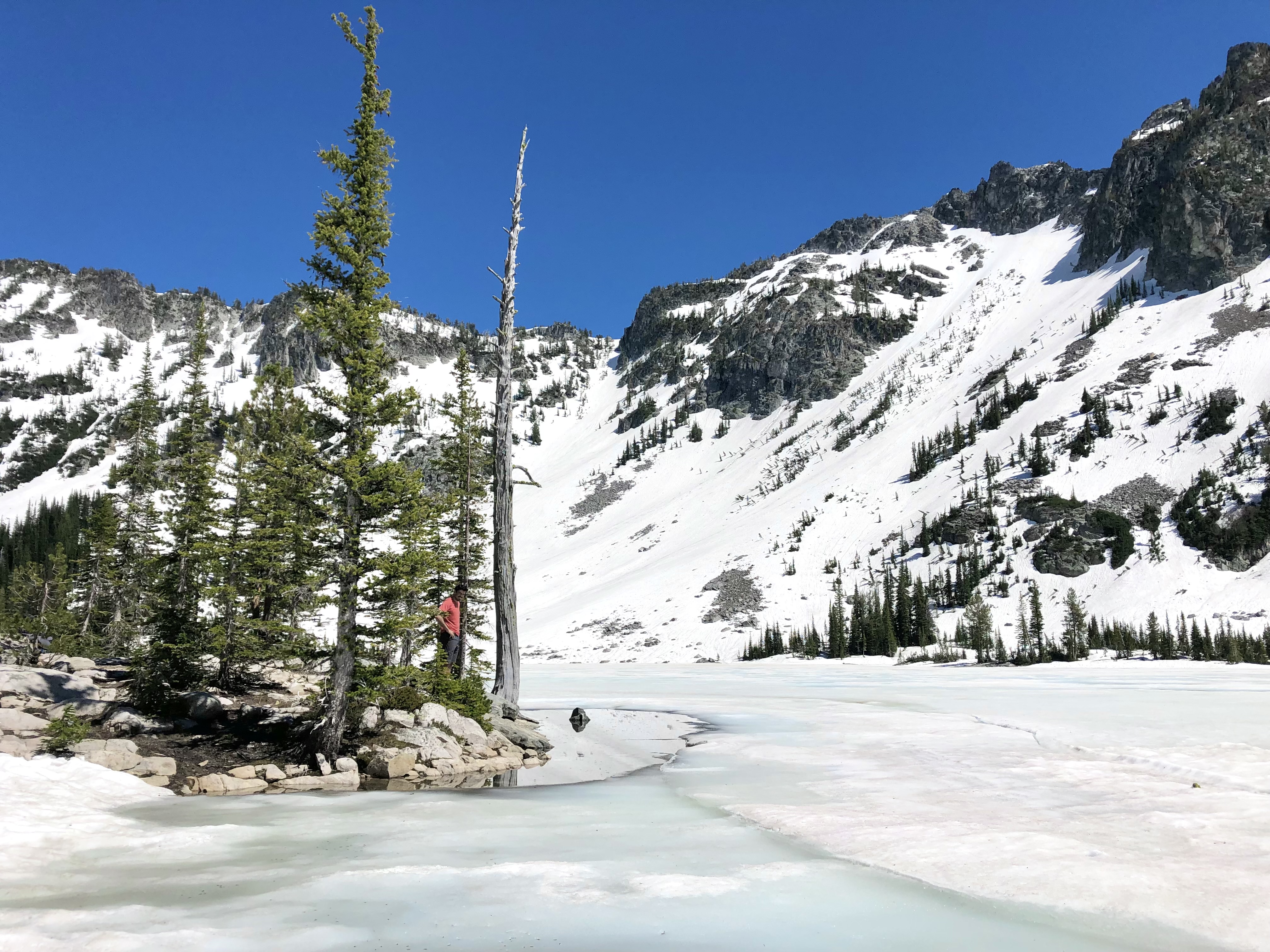 Next we popped over the Wallowas to find that the lakes were still frozen! Whoops!