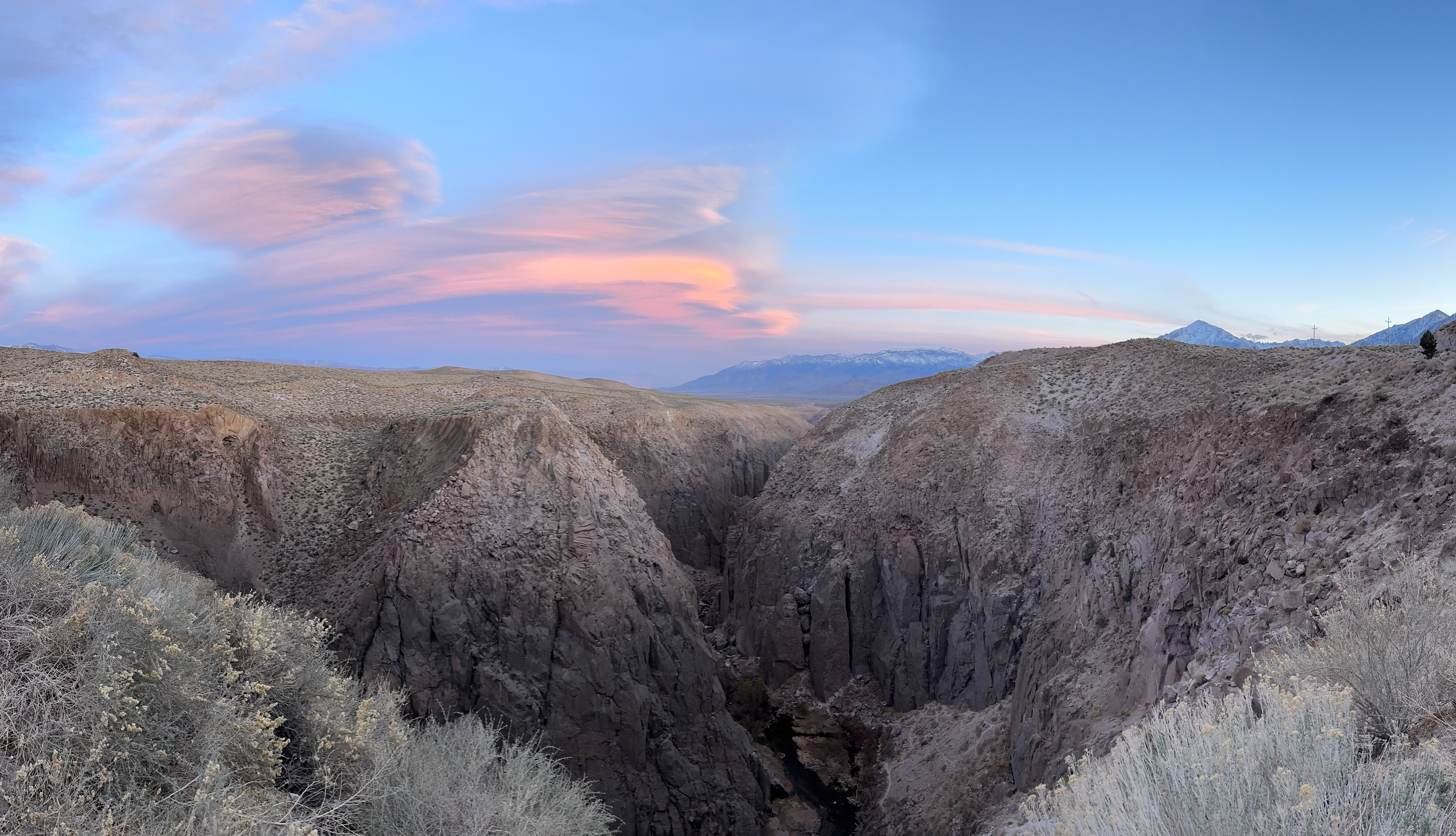 After a day of cragging at Calico, Jack and I headed west for some windy East Sierra hangs. I have been thinking of moving to Bishop for a long time so it was great to scope it out from that perspective. We had a fun half day at Owens and had Pine Creek all to ourselves. The temps were good and the views better. I could see myself here!Somewhere between Vegas and the E Sierra.