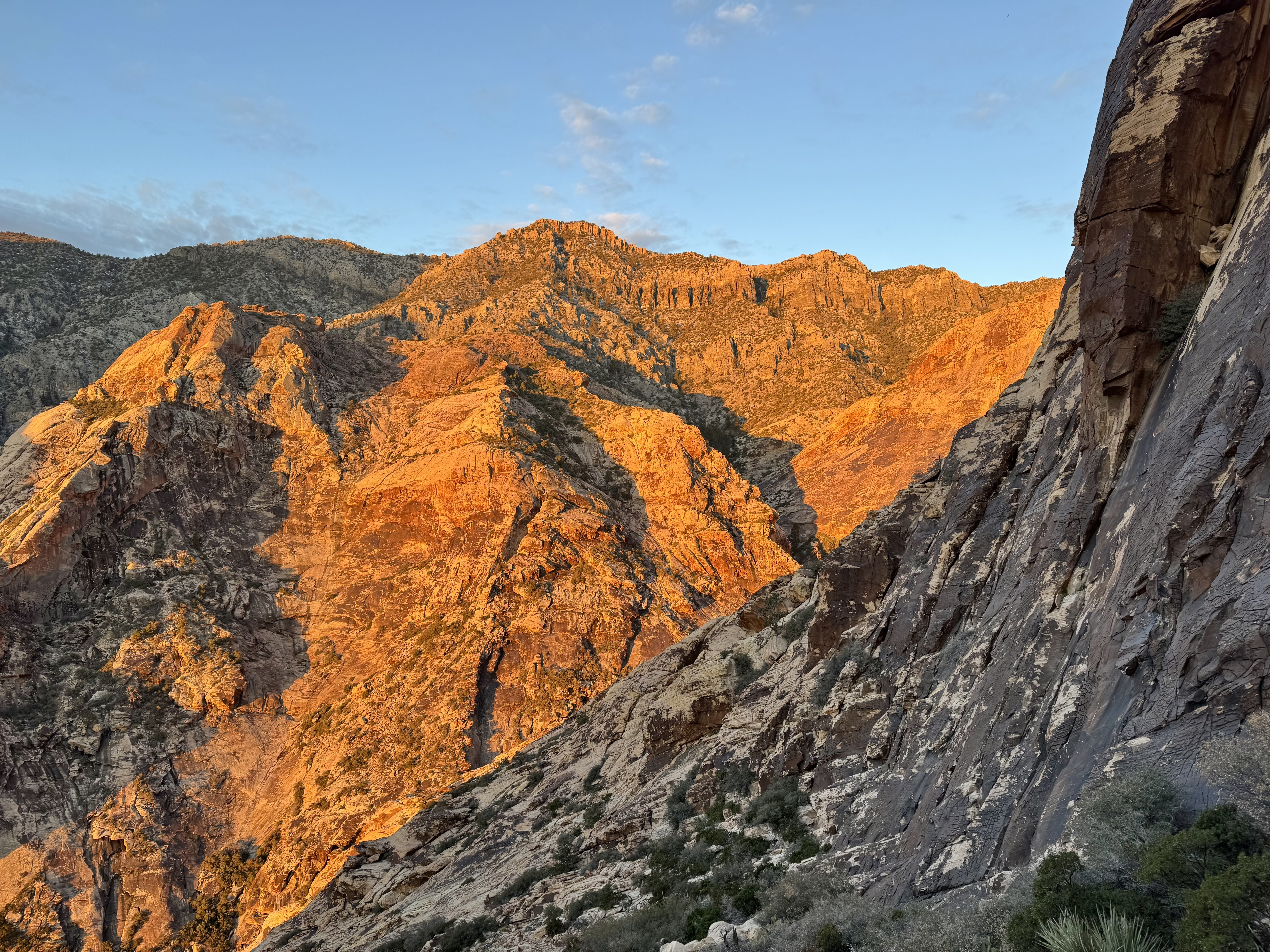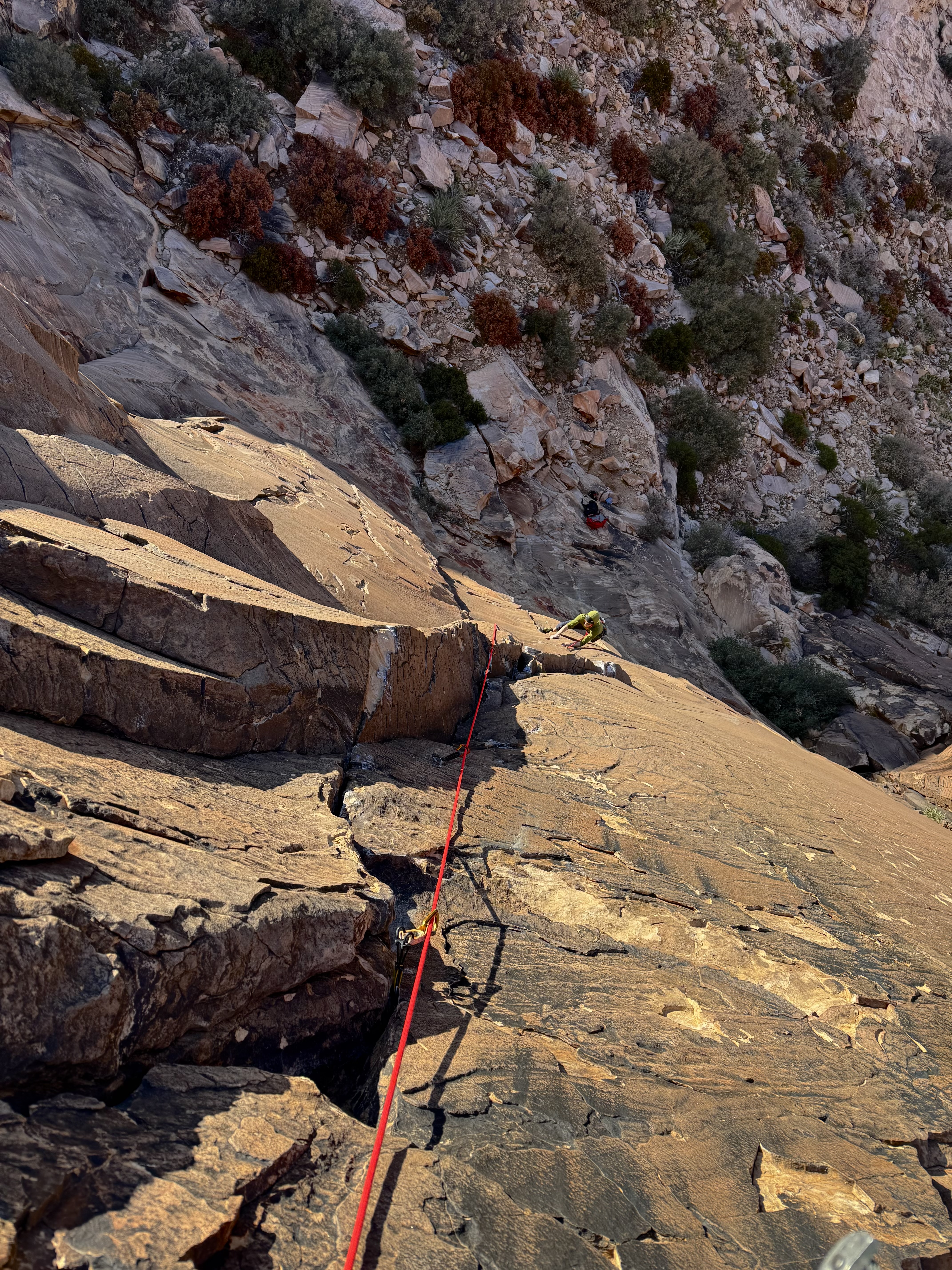 I love the Red Rocks sandstone and especially enjoy the sporty mixed routes there — it also doesn't hurt that the grades, like the rocks, are very soft. If I were to do it again I would avoid the RR Campground. It's very loud, it's in a weird location, and generally has some bad Vegas-vibes.