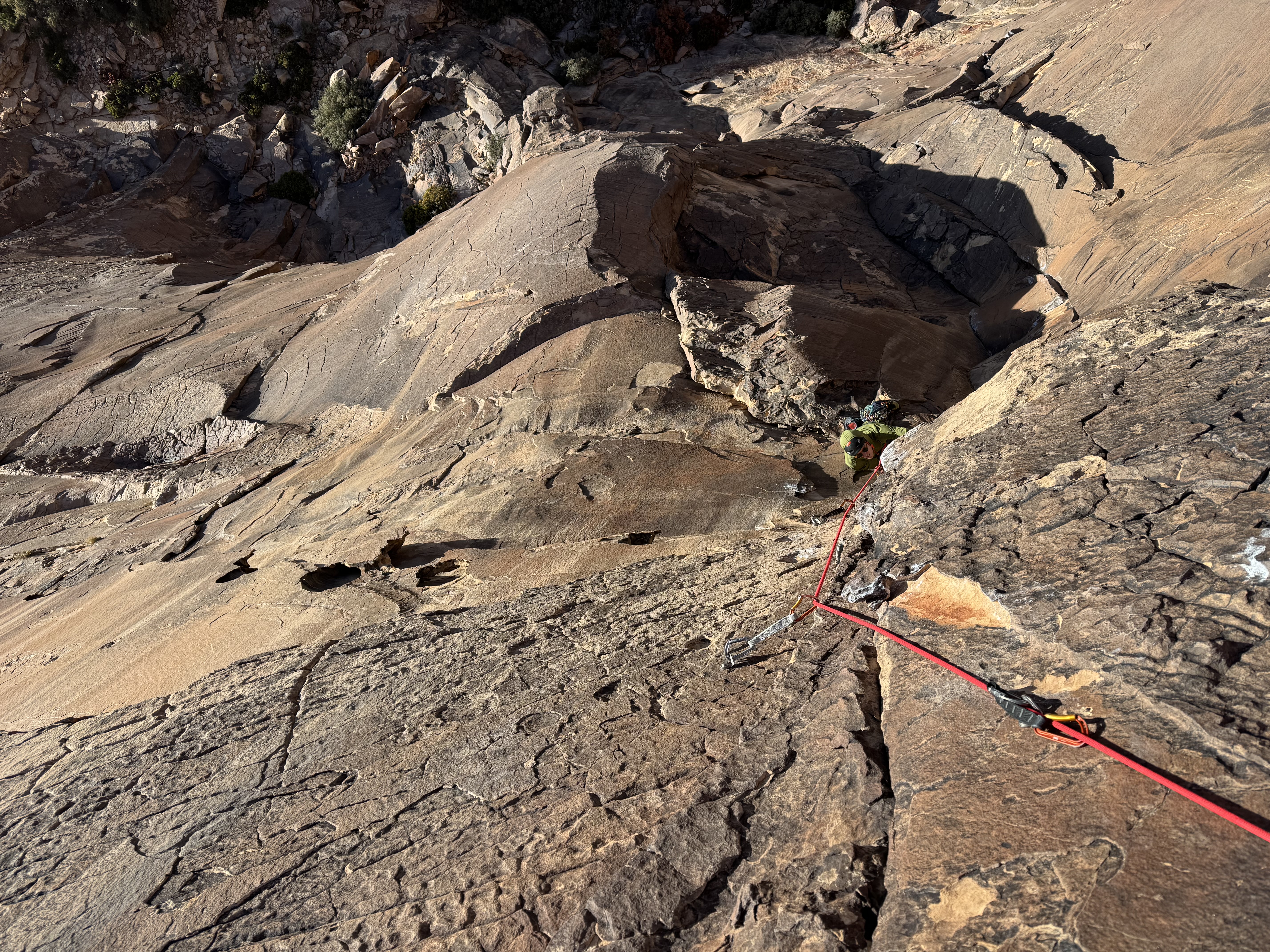 It's good to get (safely) humbled every now and then, and that's exactly what happened on this route. After glancing at the topo and overconfidently walking up this 5.7, I realized that x3 60m raps meant actual 60m raps not 60m rope. Whoops. Still, it's good to have the skills to escape with all your gear, and we successfully Reepschnur'd with just about every single thing we brought on the route! A memorable outing.