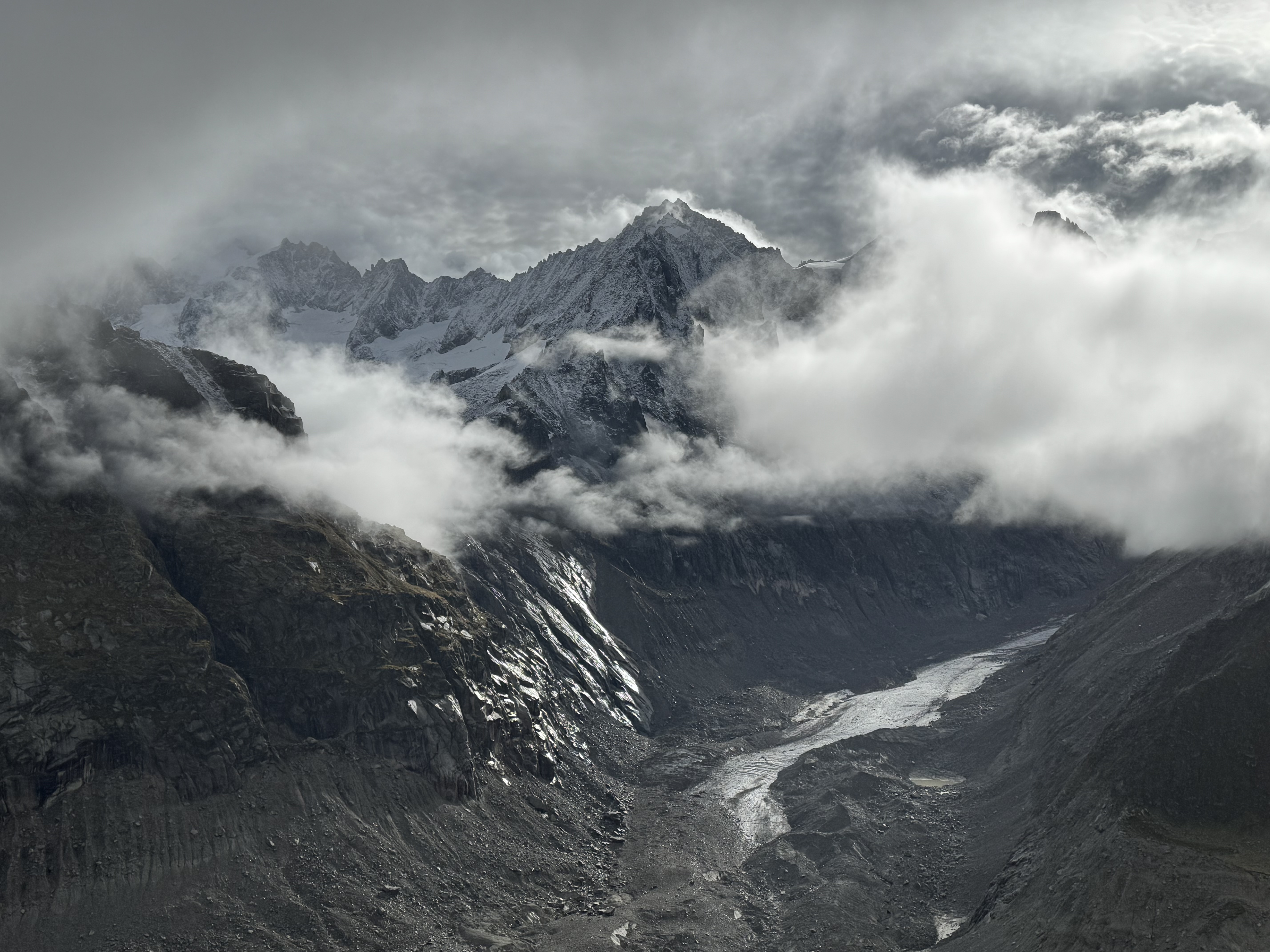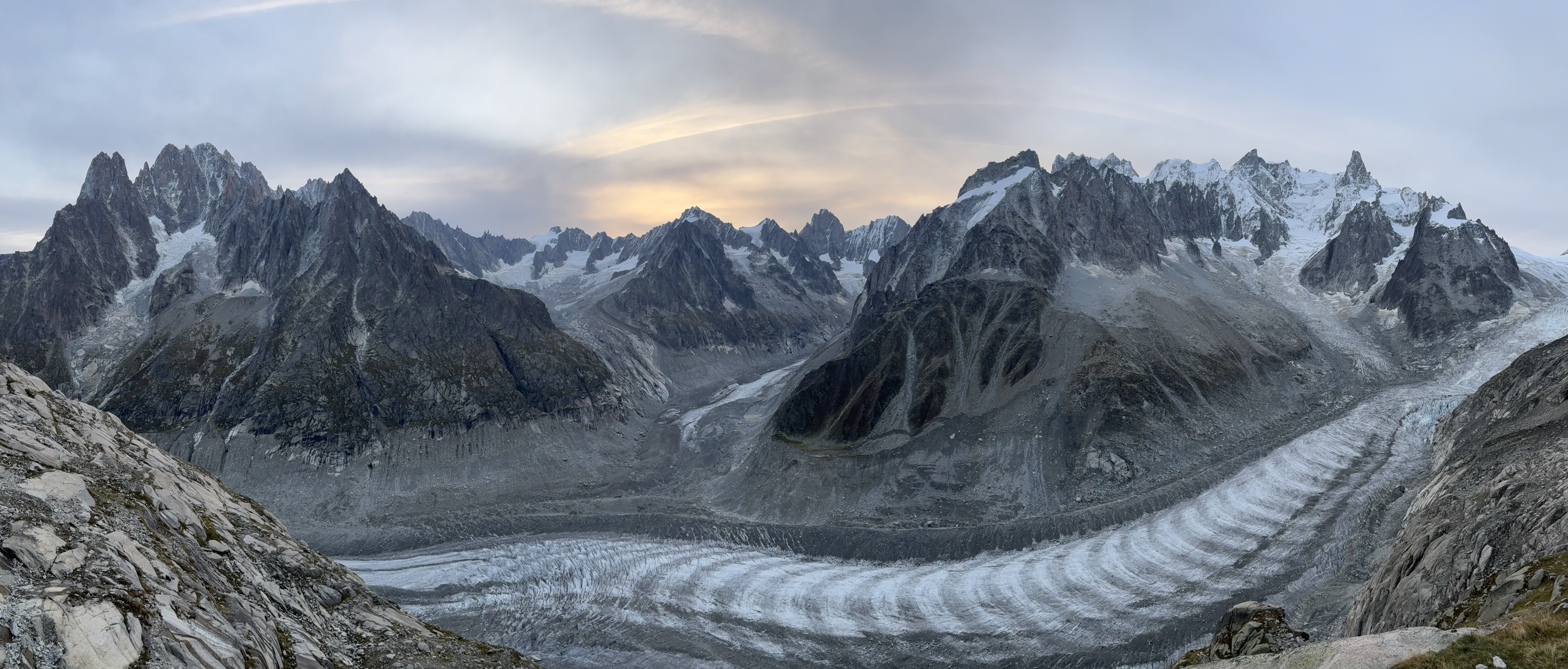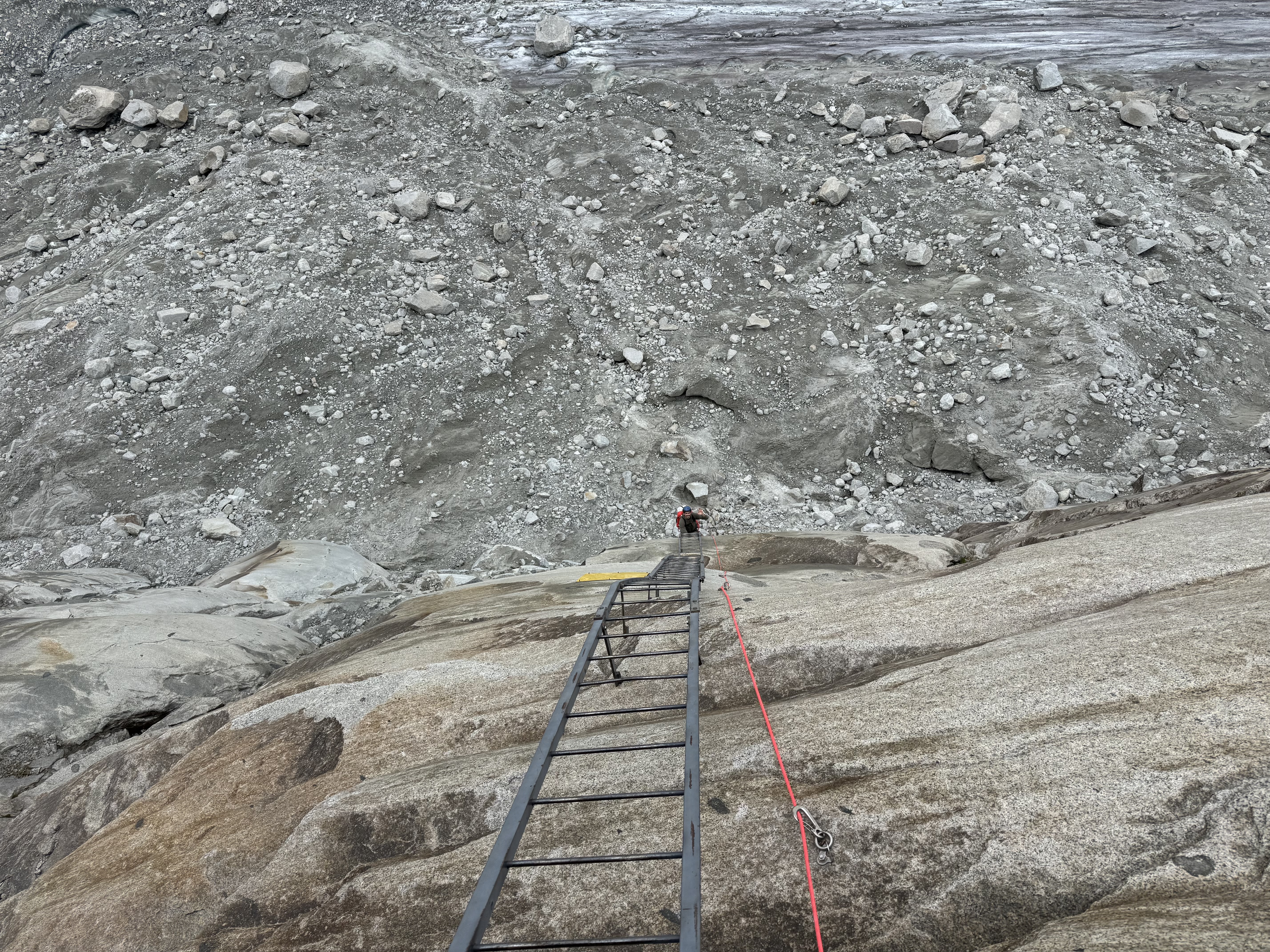 We headed to cooler temps in Chamonix and were immediately rewarded with stunning views from the Mer du Glace glacier. Leaving the house with all our gear, then taking the bus, to the train, to the gondola, to the glacier, to the via ferrata, to the Envers hut left me reeling over European alpinism all over again. I don't know if they do it right but they do it different — and whatever else it is it's very rad.Car to plane to bus to train...