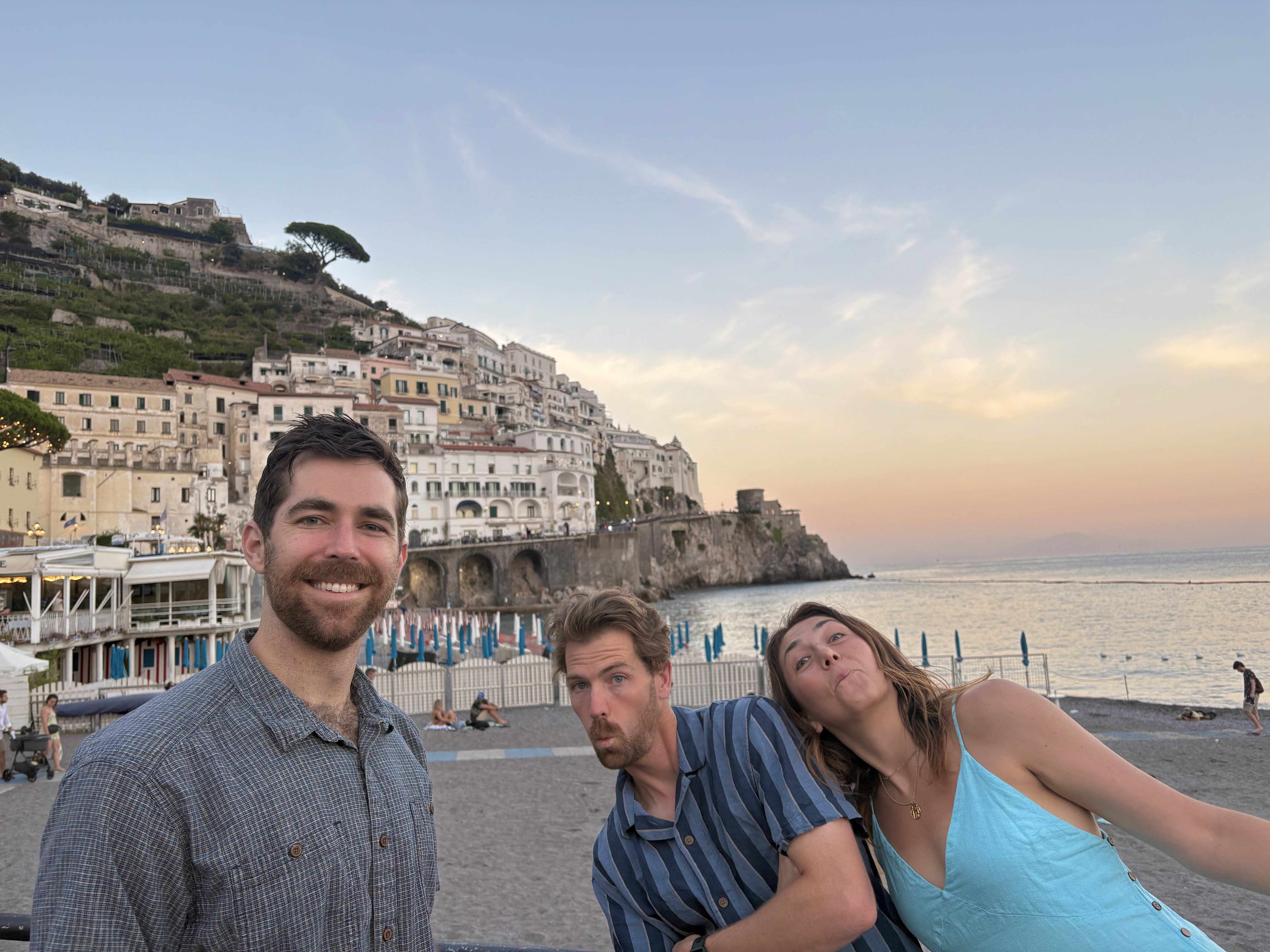 Only one day later we were off to Amalfi for Jack's brother's wedding 😵💫 I was so focused on climbing later in the trip that I didn't know what to expect in Amalfi. Safe to say I was blown away. Amalfi is smashed up against the cliffs south of Naples; it was first colonized by people fleeing mainland invasions, but its unique position led it to become one of the major maritime republics of the middle ages. Like the rest of Italy, it's now a tourist hotbed — and for good reason!The Washington crew was relieved to be in Italy (and no longer in transit)