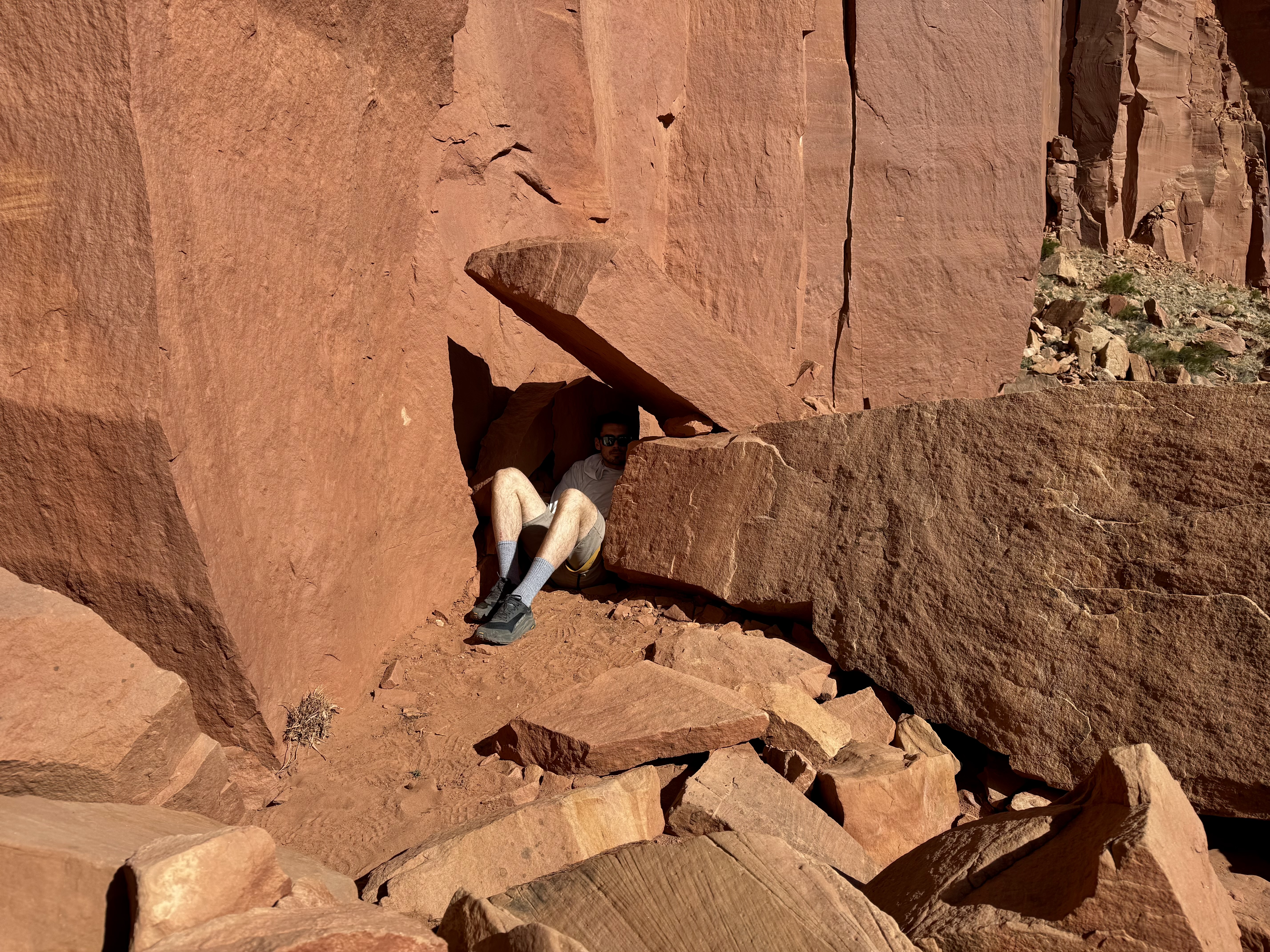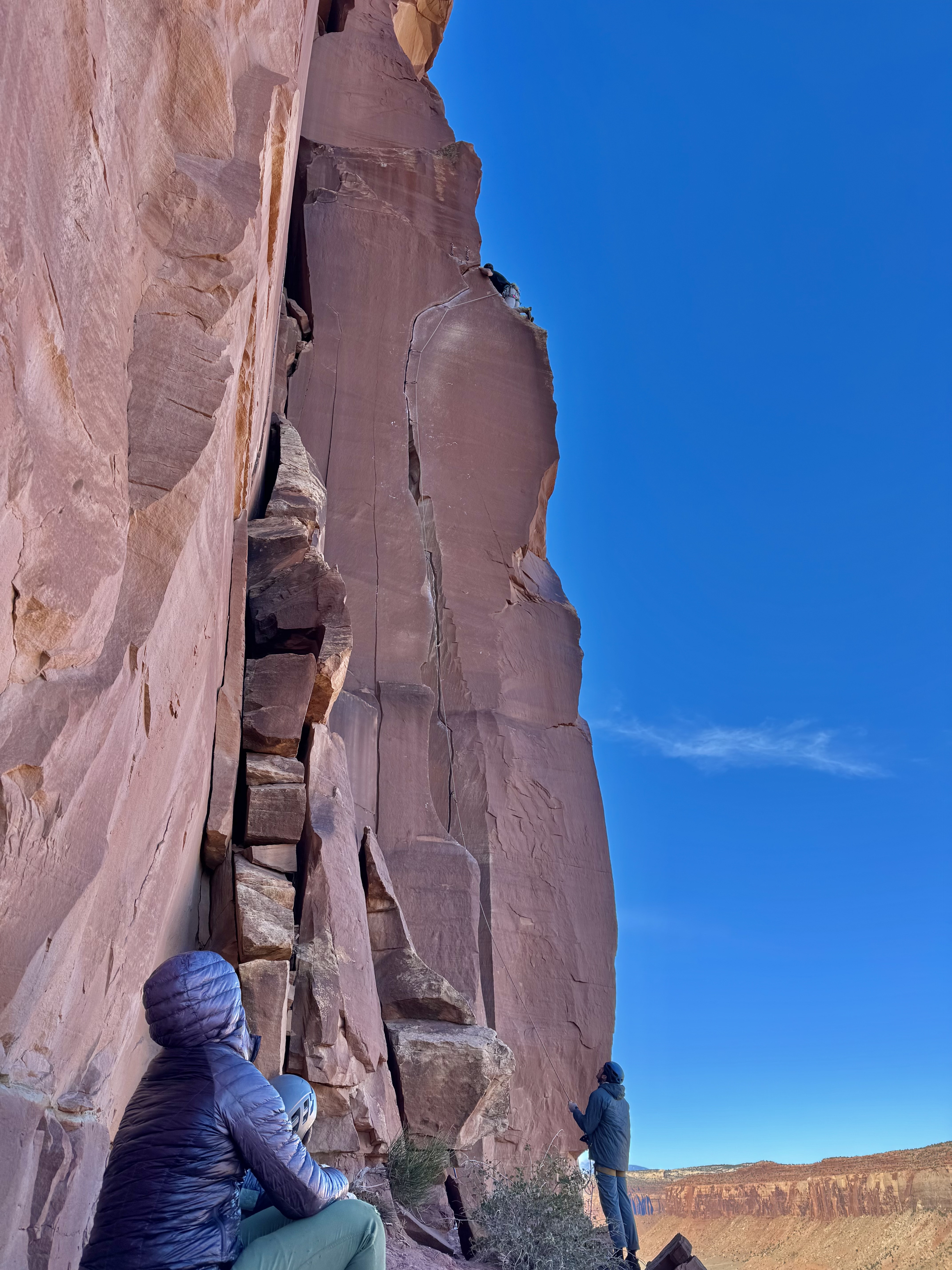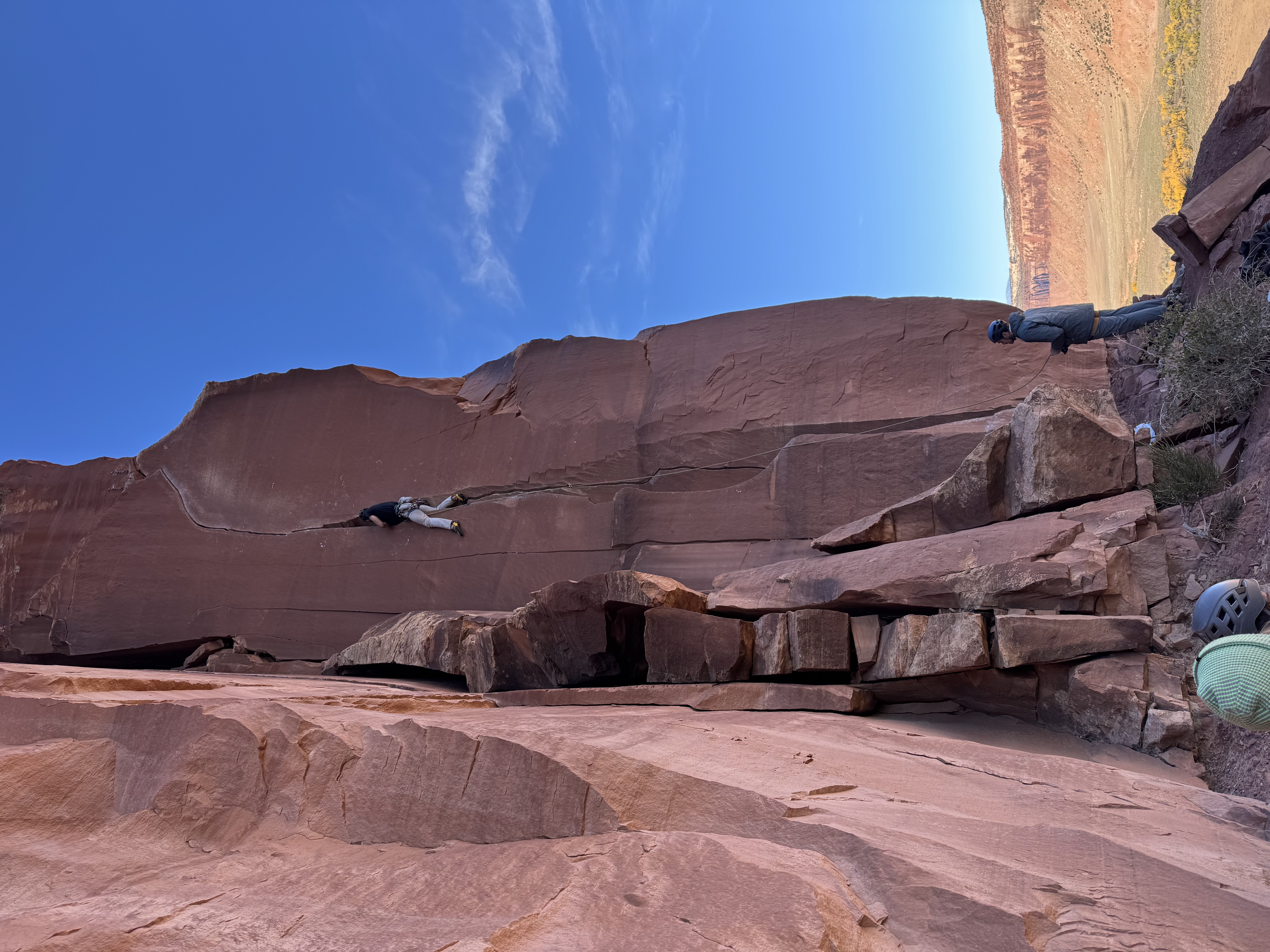 I really wanted to go back to Optimator to send Soulfire and Annunaki and maybe climb Neat. Even though we made it up early, the only party that beat us was, of course, already on Neat — and putting out bad vibes besides. I warmed up on Soulfire and fell at the top again (classic). The crowds quickly thickened and lots of people aided up Annunaki while I sat at the base waiting for a turn. I even climbed Lady Pillar while waiting. Not exactly the experience I wanted, but in the end I sent Annunaki without any trouble which made it feel worth it, if barely. I then climbed Caseys and belayed Jack T on Cobweb Splitter and Hayutake after yet more shennanigans with the crowds. This was a great reminder that the scene in the creek can be overwhelming and it's generally worth going to less-popular crags when you can. I'll always love Optimator, but I probably won't be going back soon!Me and Jack T on the Annunaki send train