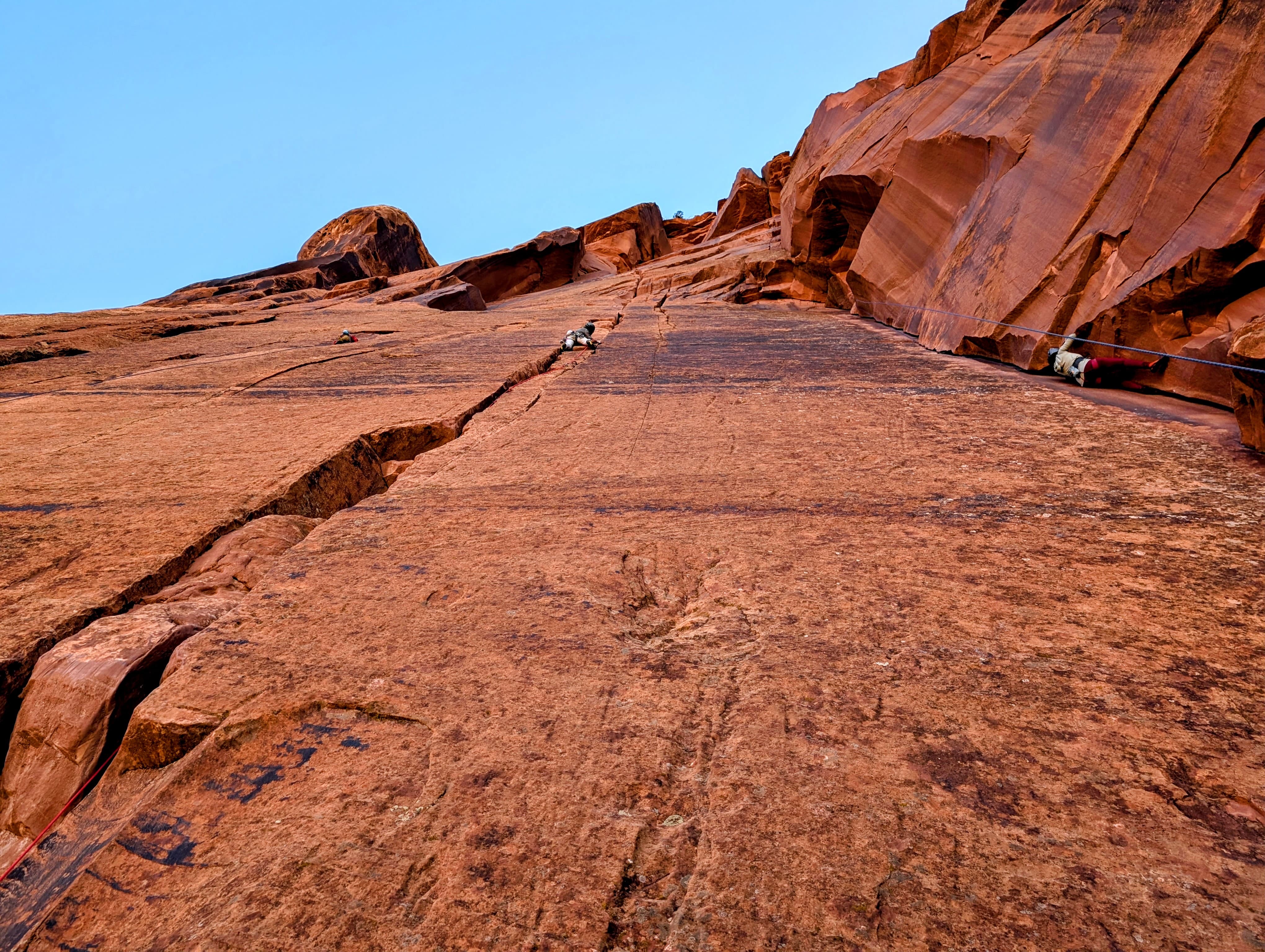 On our first day we went to Pistol Whipped. I warmed up on Spaghetti Western which turns out isn't a warm up, but it may be my favorite climb in the creek. The climbing was varied and the middle section featured a 30-foot, overhanging hand crack! We also climbed Revenge of the Rock Gods and Jolly Rancher, the latter of which was well deserving of the hype and fortunately reached with our 78.5 meter rope.