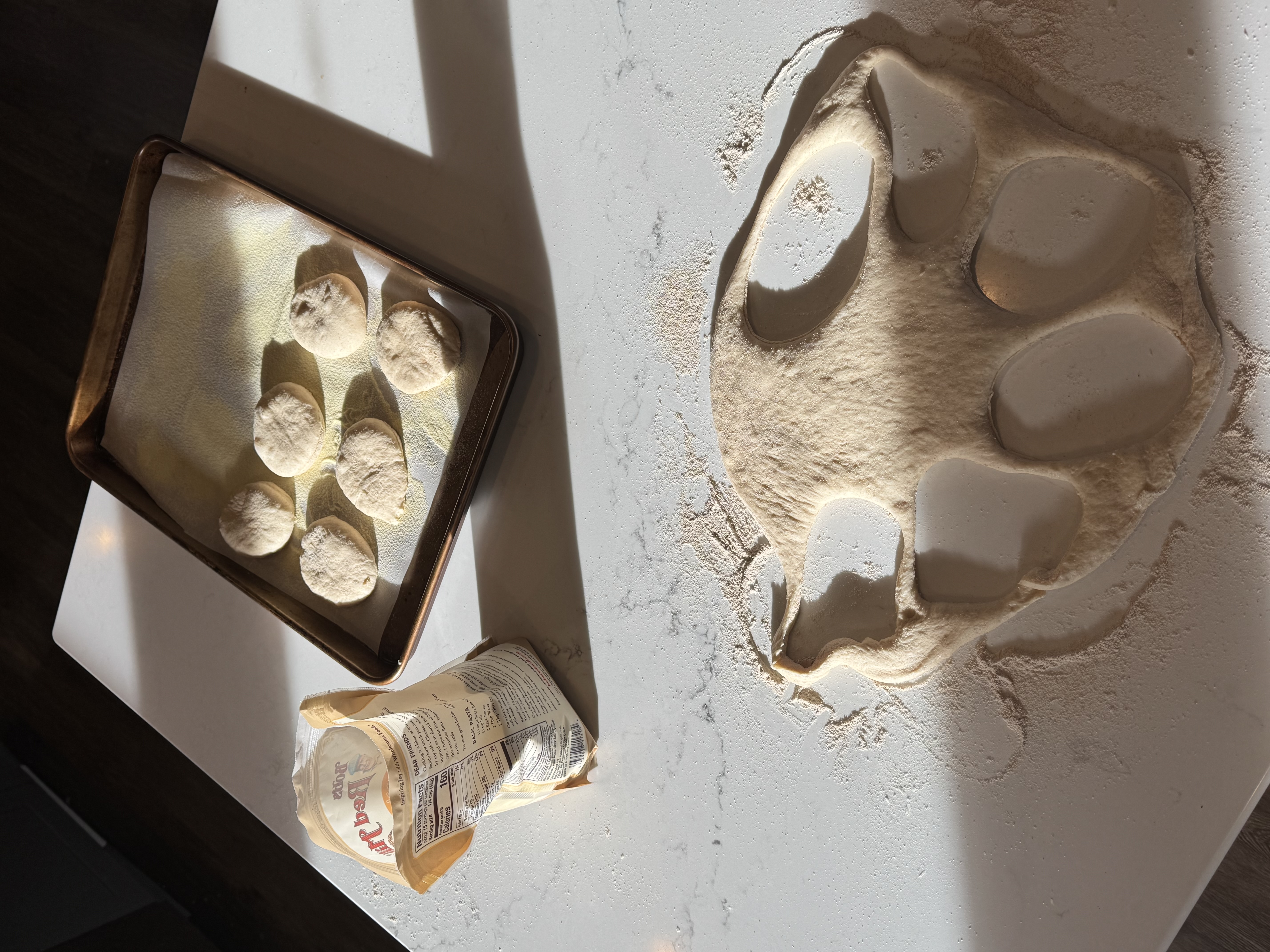 - Dust a baking sheet with semolina flour