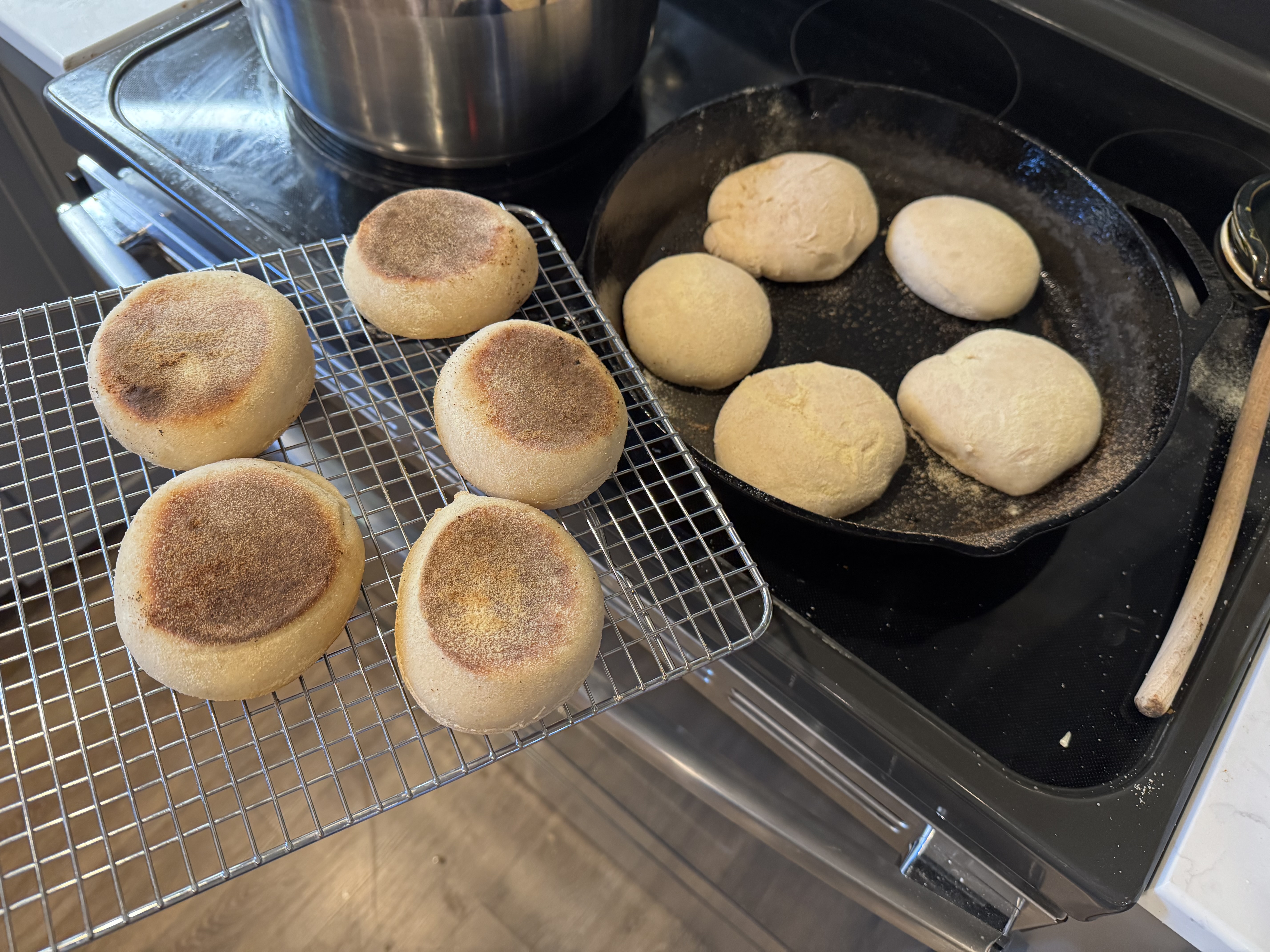 - Place muffins ½ inch apart in oiled cast iron and put on low heat for 8-10 minutes
